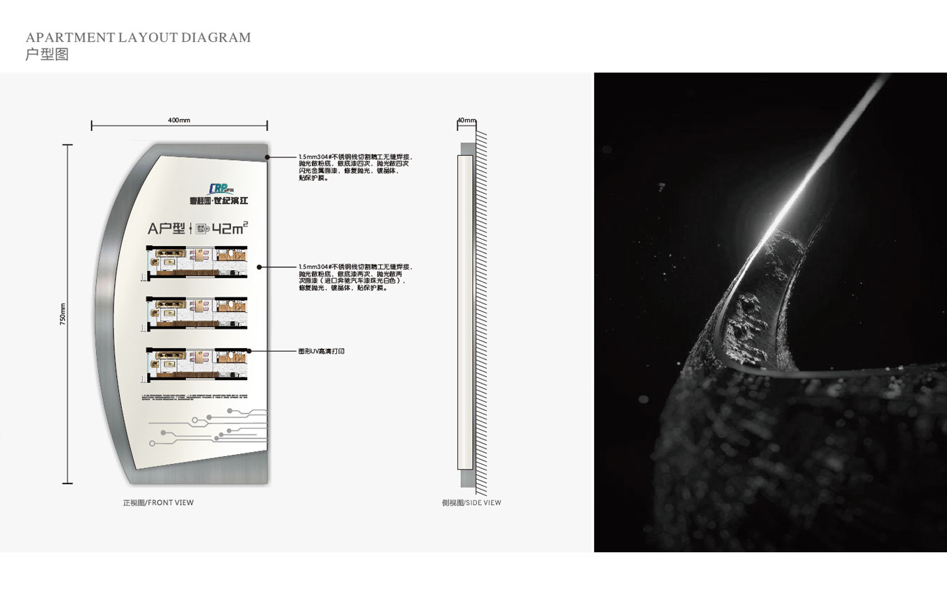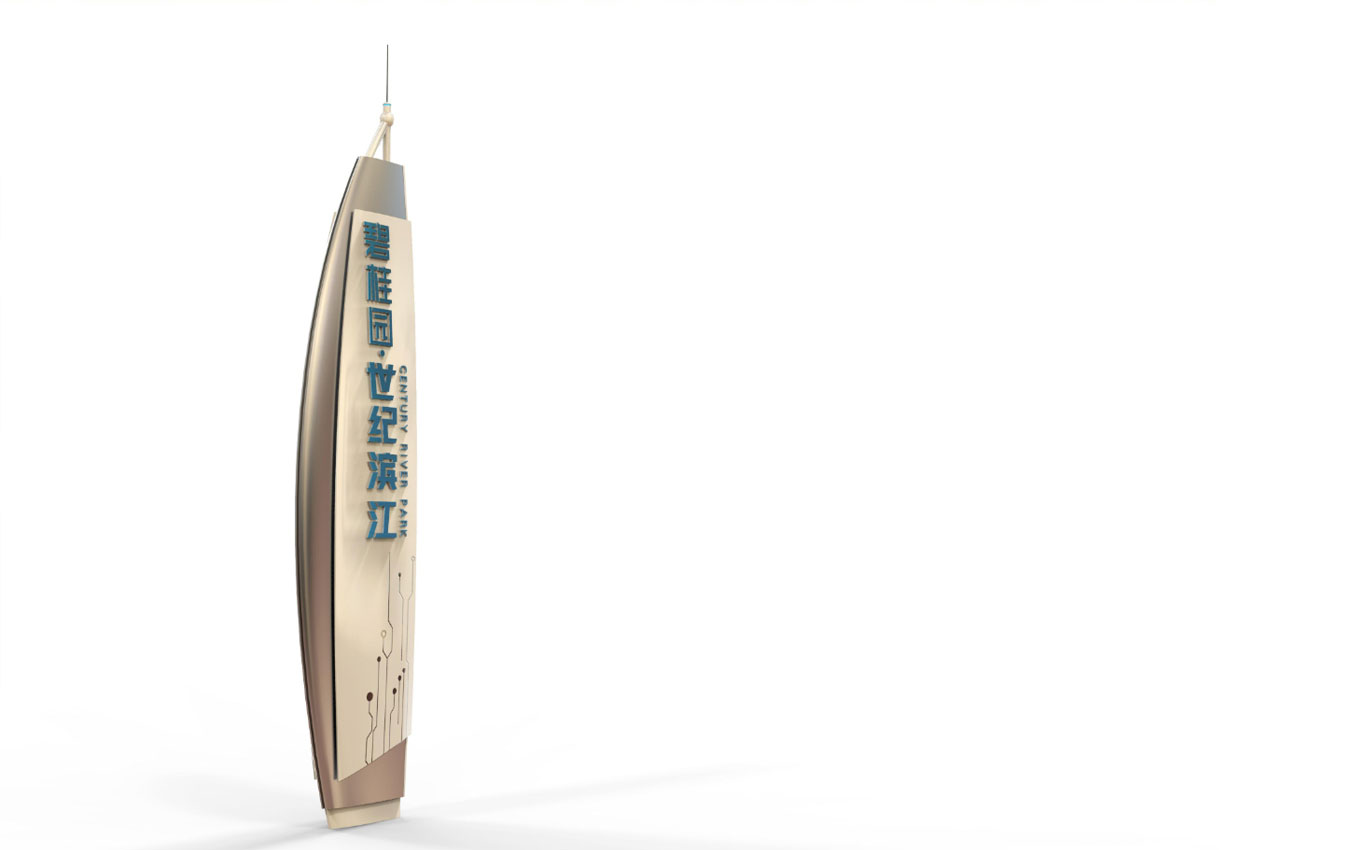 碧桂園·世紀(jì)濱江總占地約123畝,總建筑面積35萬(wàn)㎡,世紀(jì)濱江標(biāo)識(shí)設(shè)計(jì)以“濱江生態(tài)·花園辦公”概念為藍(lán)本,打造灣區(qū)創(chuàng)新門戶,佛山首個(gè)濱江產(chǎn)融旗艦綜合體。地產(chǎn)標(biāo)識(shí)設(shè)計(jì)制作范圍涵蓋獨(dú)棟總部、濱江寫字樓、創(chuàng)變SOHO、活力街區(qū)、江畔美宅5大業(yè)態(tài)、打打造集“大企業(yè)展廳、智能科技體驗(yàn)中心、智能總裁駕駛艙、科技交流中心、創(chuàng)新科技服務(wù)中心、科技孵化加速中心”等功能于一體的企業(yè)科技創(chuàng)新會(huì)客廳,鑄造佛山科技創(chuàng)新的新名片,推動(dòng)佛山創(chuàng)新智造產(chǎn)業(yè)發(fā)展。標(biāo)識(shí)設(shè)計(jì)構(gòu)思以:濱江生態(tài)與科技結(jié)合,金屬質(zhì)感樹干造型+圍邊樹葉,指示內(nèi)容印于樹葉上,簡(jiǎn)潔金屬流線型線條,結(jié)合濱水靈動(dòng)+科技硬朗質(zhì)感。